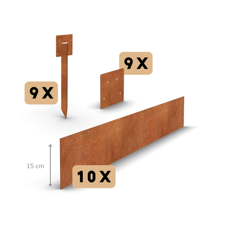 Cortenstaal borderrand gezet | Complete set per 11,5 meter