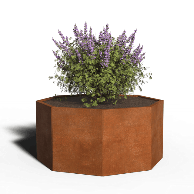 Beleben Sie Ihren Außenbereich mit unserem Cortenstahl-Pflanzgefäß Octagon. Ob Sie einen kleinen Stadtgarten, einen geräumigen Balkon oder eine große Landschaft haben, dieses Pflanzgefäß passt perfekt. Mit den Maßen 121 x 60 bietet dieses Pflanzgefäß den perfekten Platz für Ihre Blumen oder Pflanzen. Die kräftige orange-braune Rostfarbe des Cortenstahls verleiht Ihrem Garten ein warmes und natürliches Element. Und mit einem Fassungsvermögen von können Sie bei Ihrer Bepflanzung kreativ werden. Gestalten Sie Ihren Garten noch heute um und entdecken Sie die Einfachheit und Schönheit von Planters of Steel.