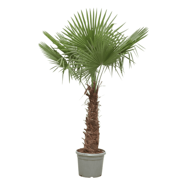 The Trachycarpus fortunei, also known in the Netherlands as the Chinese fan palm or Hemp palm, is a robust and majestic palm belonging to the family Arecaceae (Palms family). This is an evergreen, fast-growing tree loved worldwide for its impressive appearance and exceptional hardiness. The palm develops a long, straight trunk covered with coarse brown fibers, giving it a rustic texture. A lush crown of large, fan-shaped and deeply incised leaves forms atop the trunk. It is one of the most suitable hardy palms for the European climate, as it experiences temperatures up to about -17°C to -18°C can tolerate.