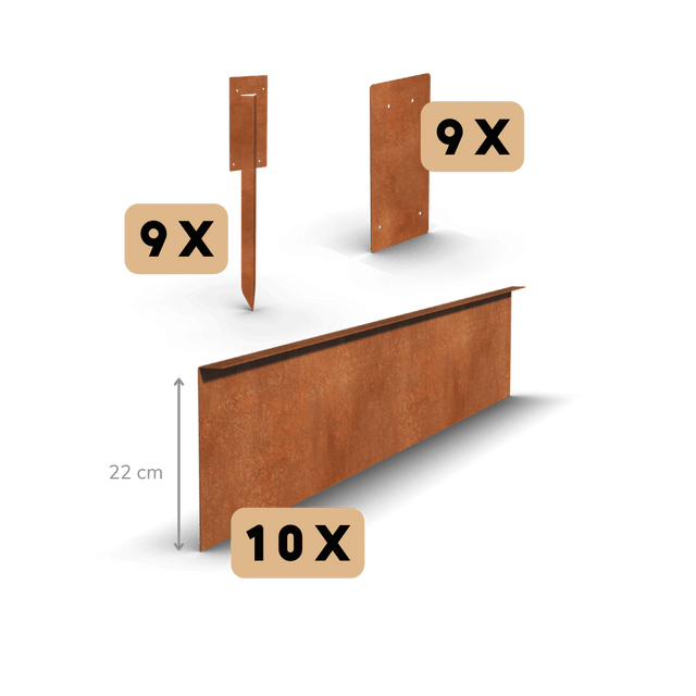 Transforme su jardín con nuestros bordes de acero corten de alta calidad. Con unas medidas de 230 x 3 x 22, esta solución resistente y duradera pone orden al instante en su oasis verde. Ya sea para separar céspedes, caminos o bordes, los bordes forman una transición perfecta y ofrecen un aspecto moderno de color marrón anaranjado que crece con su jardín. Gracias a su sencillo proceso de instalación, podrá disfrutar rápidamente de su jardín con líneas limpias y un bonito acabado. Elija Planters of Steel y convierta su jardín en un lugar de ensueño.