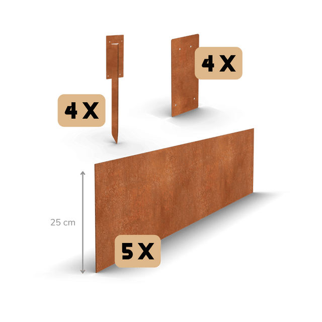 bordillo de acero corten recto 25 cm | Juego completo por 11,5 metros