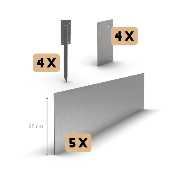 Muunna puutarhasi korkealaatuisella sinkkireunuksella. Mitoiltaan 230 x 0,2 x 25, tämä vahva ja kestävä ratkaisu tuo välittömästi järjestystä vehreään keidasasi. Olipa kyseessä nurmikon, polkujen tai reunusten erottaminen, reunus muodostaa saumattoman siirtymän ja tarjoaa modernin, hopeisen ilmeen. Helpon asennusprosessin ansiosta voit nopeasti nauttia puutarhastasi puhtaiden linjojen ja kauniin viimeistelyn ansiosta. Valitse Planters of Steel ja tee puutarhastasi unelmapaikka. Planters of Steel toimittaa sinulle pelkkien tuotteiden lisäksi kestävän muutoksen puutarhassasi.