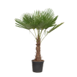 Le Trachycarpus fortuneiLe palmier à huile, également connu aux Pays-Bas sous le nom de palmier chinois ou palmier à chanvre, est un palmier robuste et majestueux appartenant à la famille des Arecaceae (famille des palmiers). Il s'agit d'un arbre à feuilles persistantes et à croissance rapide, apprécié dans le monde entier pour son aspect impressionnant et sa rusticité exceptionnelle. Le palmier développe un tronc long et droit recouvert de fibres brunes grossières, ce qui lui donne une texture rustique. Une couronne luxuriante de grandes feuilles en forme d'éventail et profondément incisées se forme au sommet du tronc. C'est l'un des palmiers rustiques les mieux adaptés au climat européen, puisqu'il supporte des températures allant jusqu'à environ De -17°C à -18°C peut supporter.