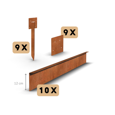 rabattkant i cortenstålvalsat | Komplett set per 11,5 meter